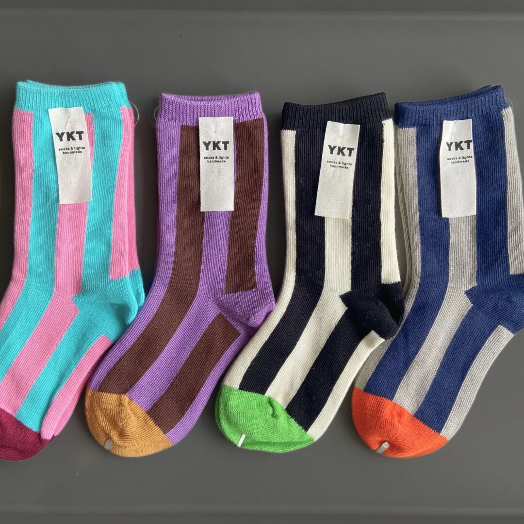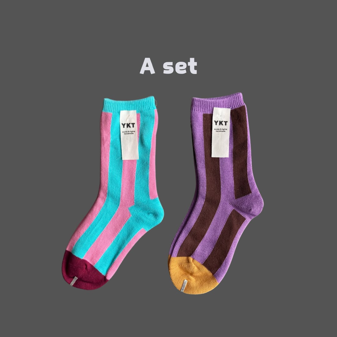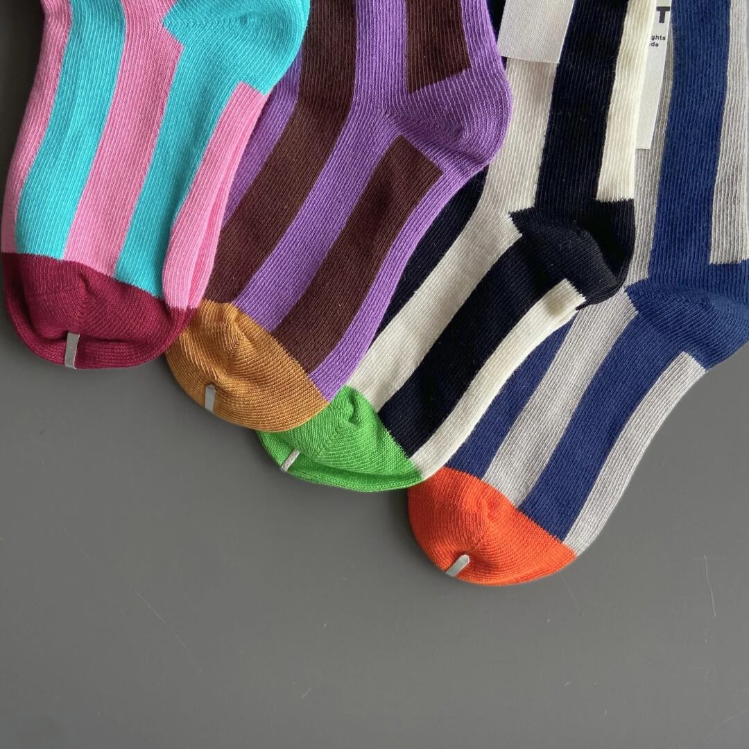 【即納】2足SET カラーストライプ クルーソックス 子供靴下 キッズソックス